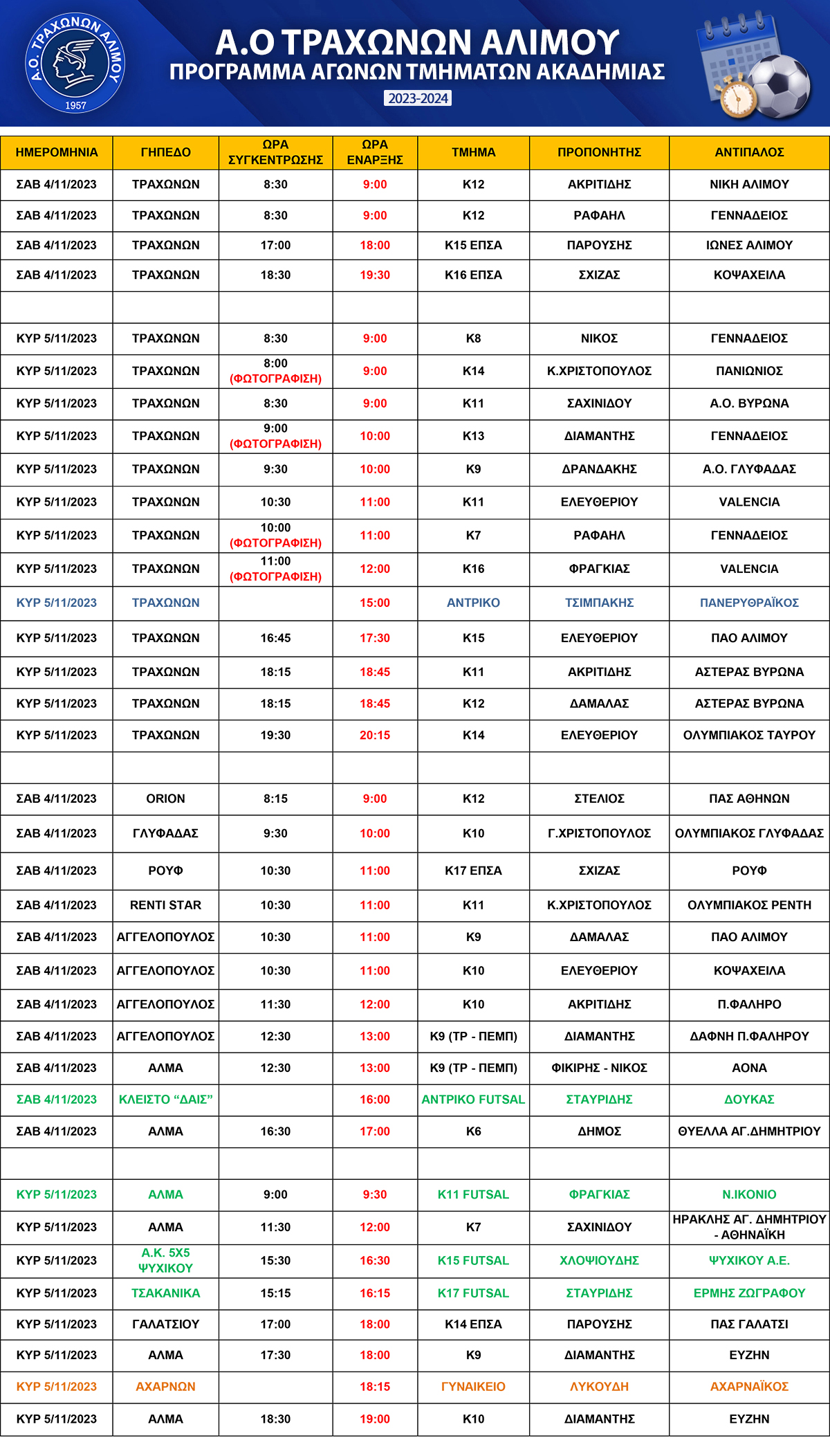 Πρόγραμμα αγώνων 4-5 Νοεμβρίου 2023 (ΟΡΘΗ ΕΠΑΝΑΛΗΨΗ) Written by popi vekri on November 2, 2023. Posted in Uncategorized