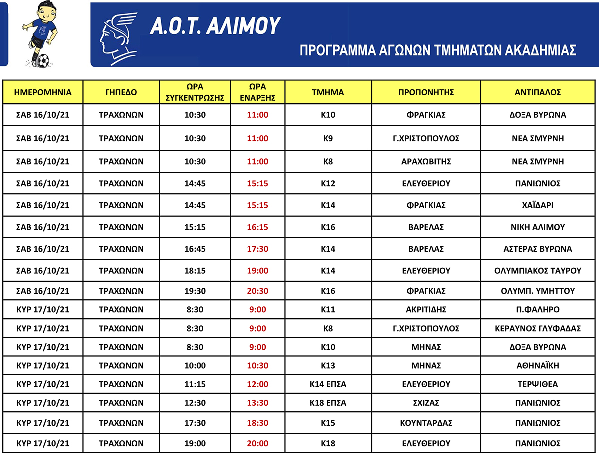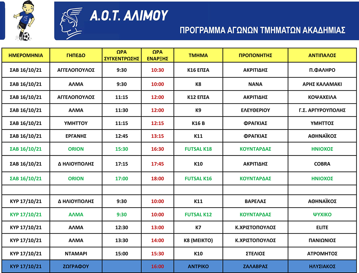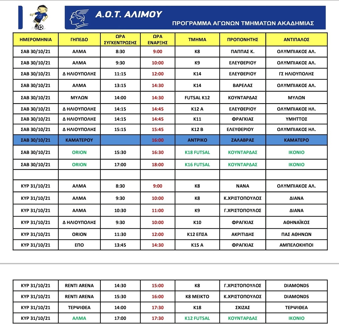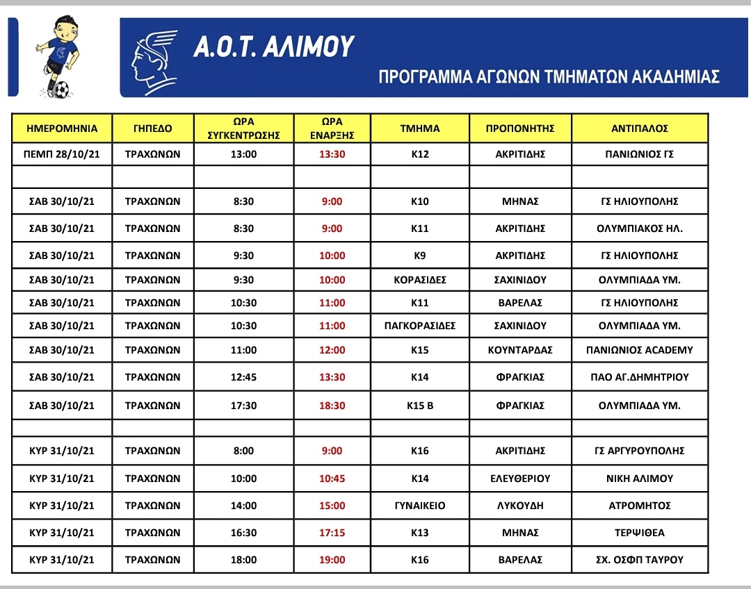 Το πρόγραμμα των αγώνων 27-28 Νοεμβρίου