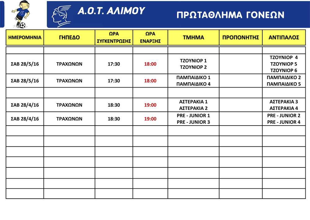 Ξεκινάει το Πρωτάθλημα Γονέων το Σάββατο 28 Μαΐου 2016. Αναλυτικά το πρόγραμμα της 1ης Αγωνιστικής: