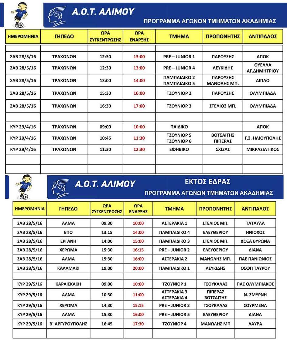 Οι προπονήσεις των τμημάτων θα συνεχιστούν έως 30 Ιουνίου 2016.