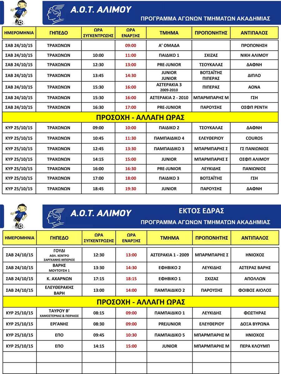 Πρόγραμμα αγώνων Σαββάτου και Κυριακής 24-25/10/2015