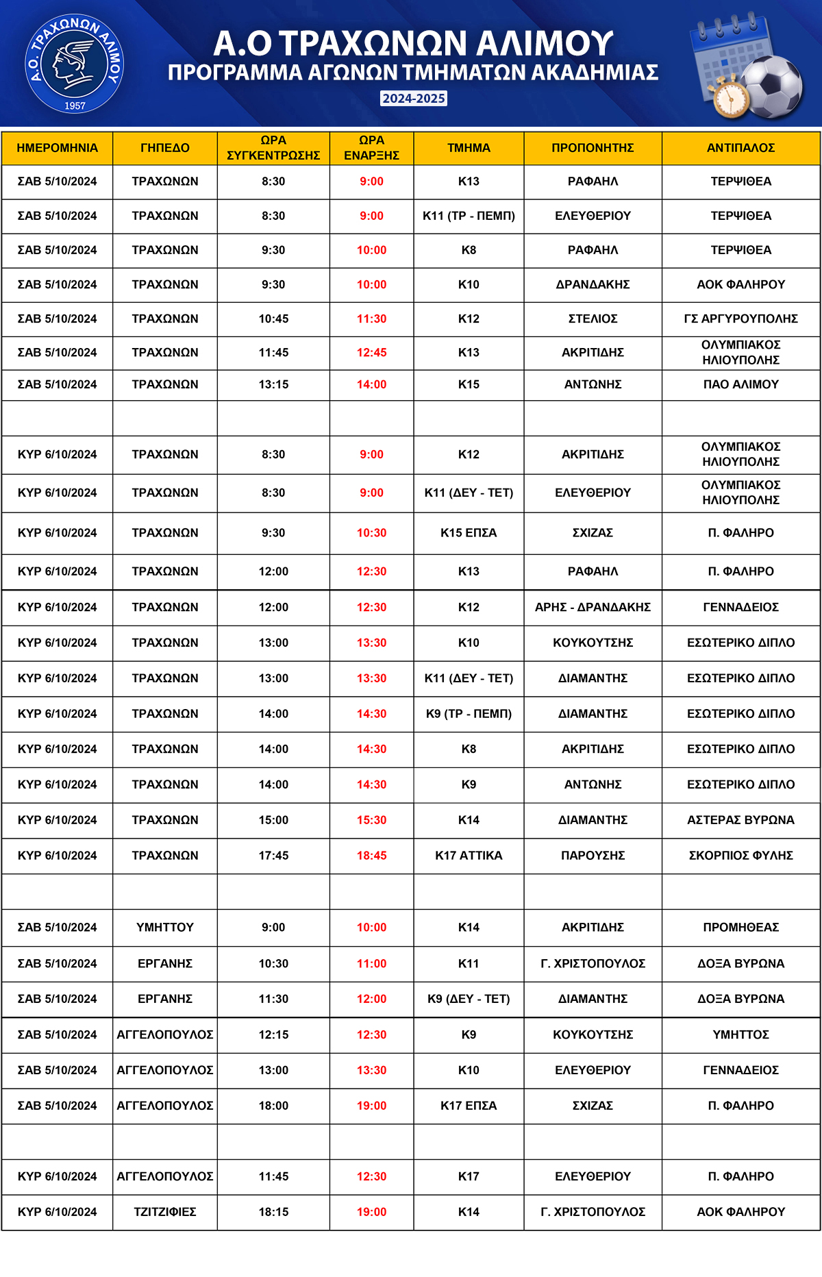 Πρόγραμμα Αγώνων 5-6 Οκτωβρίου 2024 (ΟΡΘΗ ΕΠΑΝΑΛΗΨΗ)