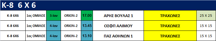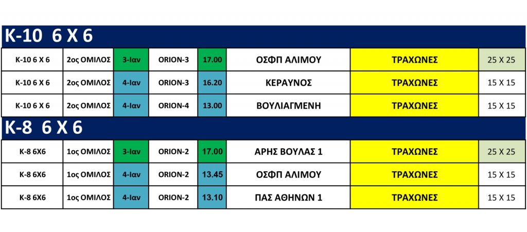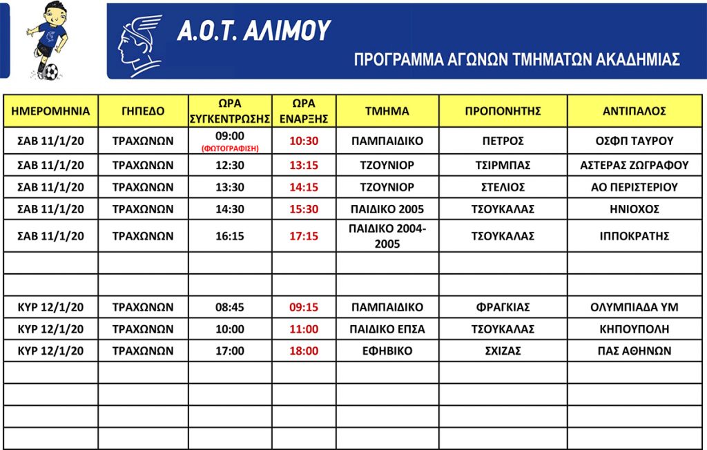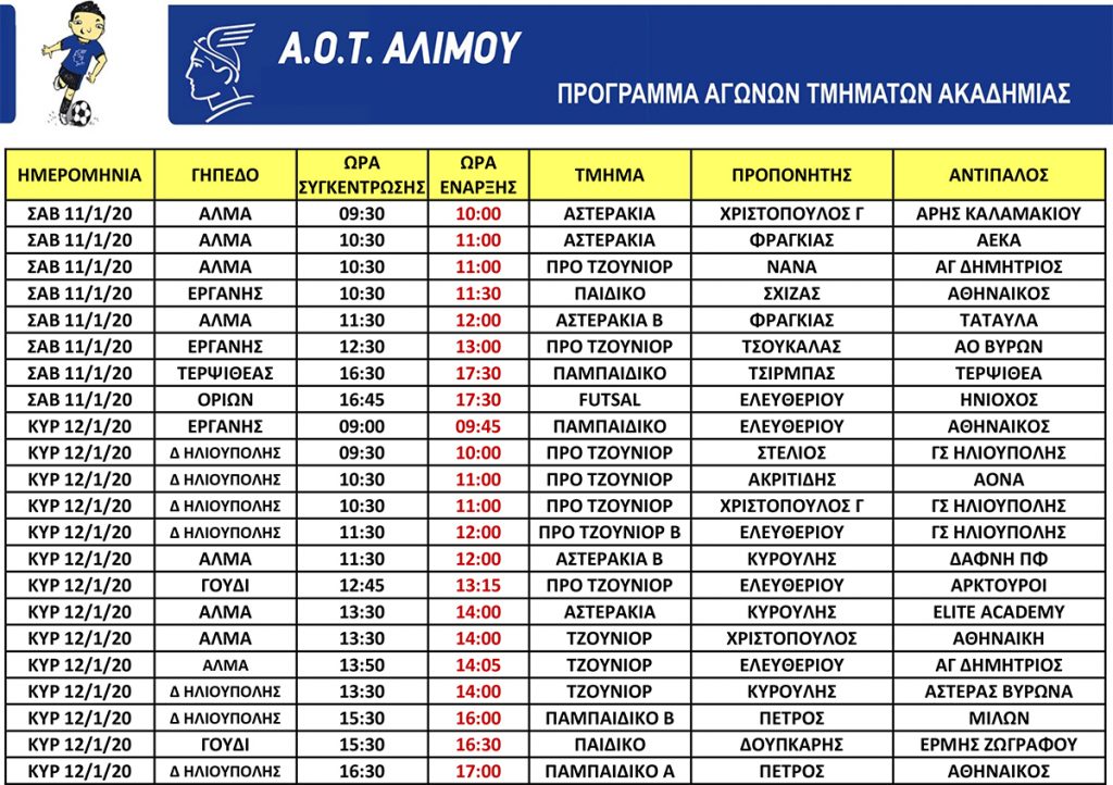 Πρόγραμμα Αγώνων 11-12/01/2020