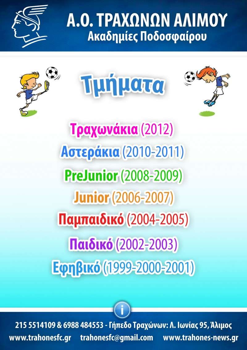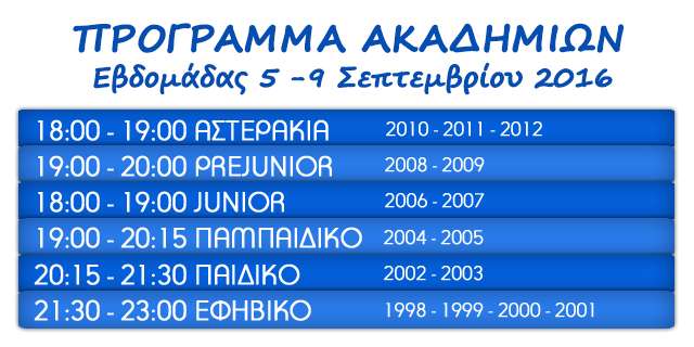 19:00 για τα τμήματα PREJUNIOR και ΠΑΜΠΑΙΔΙΚΟ